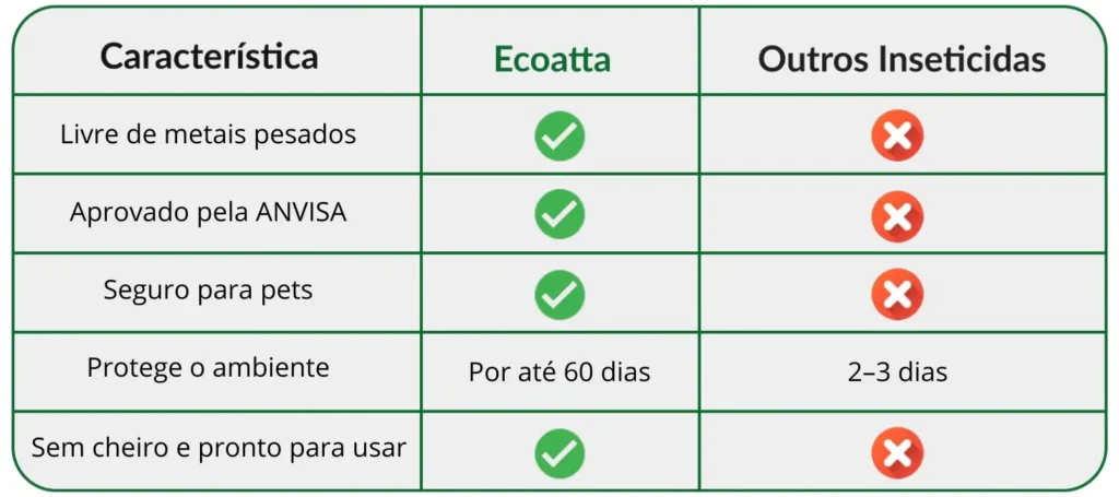 Sim. O Ecoatta é seguro para uso em ambientes com pessoas e animais, pois age apenas contra insetos invertebrados. Para garantir total segurança, é importante seguir corretamente as orientações de uso indicadas no rótulo e na embalagem.